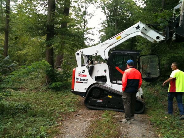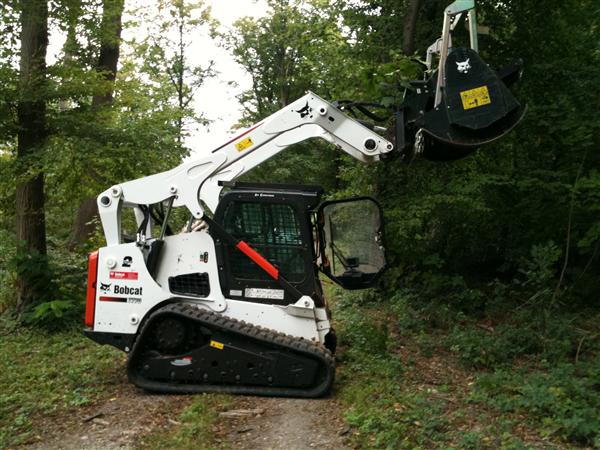 Wir fällen Bäume, schneiden Hecken und Sträucher. Neu in unserem Fuhrpark haben wir dafür u. a. eine Bobcat T770 - die Top Forstmaschine mit Forstmulcher:
