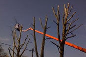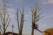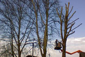 - Kronenschnitt, Kronensicherung, insbesondere im Kronenbereich, der mit Leitern schlecht zu erreichen ist, setzen wir auf Wunsch Hubsteiger ein.
